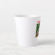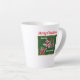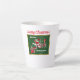 Diese Latte Tasse hat den Weihnachtsmann mit einem rot-weißen Zug mit Pfefferminzkerzenrädern, die Buchstaben und Bonbons auf einem grünen Hintergrund tragen: Choo, Choo Here Comes Santa mit einem goldenen Rahmen. Passen Sie den frohen Weihnachtstext oben mit der Vorlage an.