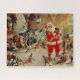 Eine einfach wunderbare Vintage Abbildung des Weihnachtsmannes, seiner Elfen und seiner Rentiere in der Werkstatt.