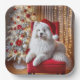 Santa Samoyed Hund auf einem roten Stuhl Pappteller