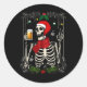 Santa Skeleton Drinking Bier Retro Frohe Weihnacht Runder Aufkleber