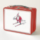 Die Mittagsschachteln von Santa Skiing sind für Skifahrer, Carpooler, LKWs, Kaffeetrinker, heiße Schokoladentrinker, Studenten und Leute, die während der Feriensaison gute Laune verbreiten. Santa Skiing ist die Original Cartoon-Kunst von Steamy Raimon.