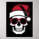 Weihnachts-Schädel-Poster für gotische Weihnachten. Funny Goth Weihnachten minimalistisch schwarz und rot drucken. Die Einrichtung der Zimmer ist schlicht. Skull mit Weihnachtsmannmütze und Sonnenbrille Illustration Poster.