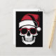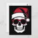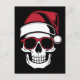 Weihnachtsschädel für gotische Weihnachten. Funny Goth Weihnachten minimalistisch schwarz und rot drucken. Die Einrichtung der Zimmer ist schlicht. Skull mit Weihnachtsmannmütze und Sonnenbrillen Illustrationskarten