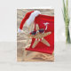Santa Seesterne mit einem Bikini und Sonnenbrille auf einem roten Sand-Liegestuhl.