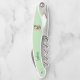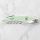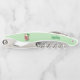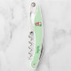 Dieser Korkenzieher hat den Weihnachtsmann mit einem Schild versehen, auf dem "Frohe Weihnachten" steht, umgeben von niedlichen kleinen Waldtieren und Vögeln, die in einem Schneehaufen von einem kleinen verzierten Kiefernbaum auf hellgrünem Hintergrund stehend sind. Passen Sie Ihren Namen oder Text mit den Vorlagen auf der Vorder- und Rückseite an.