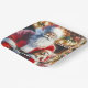 Eine niedliche Aquarellkunst, die den Weihnachtsmann zeigt, wie er am Heiligabend einen Welpenhund auf seinem Schoß hält, mit Vintagen Bildern. Weihnachts-Party Papier Teller.