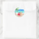 Santa Clause und Rentiere sitzen am Strand lustige Snowvogelaufkleber.