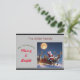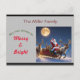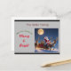 Eine personalisierte Weihnachtskarte, mit der der Weihnachtsmann in einem Schlitten mit seinem Rentier an einer Nacht mit Vollmond reiten kann.