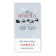 Aus der Küche des personalisierten Weihnachtskochlabels mit einem subtilen grauen Hintergrund mit Schneeflocken. Extravagante trendige Schrift, in der es heißt: Frohe Weihnachten und viel Glück im neuen Jahr. Mit einer schwarzen Silhouette fährt der Weihnachtsmann in seinem Schlitten und wird von seinen Rentieren angezogen, die über den Himmel fliegen.