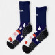 Dieses lustige Design hat einen lächelnden Weihnachtsmann und Sterne auf dunkelblau.
