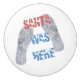 Der Weihnachtsmann war hier rosa und blauer Text und zwei Fußspuren im frischen Schnee. Weihnachtsdrucke, Geschenke und T - Shirt für Spaß, Spaß und gute Stimmung