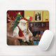 Santa auf Zuhause mit seinem weiden Cairn Terrier, entspannen vor einem gemütlichen Feuer vor der großen Nacht. (Man beachte Mona Lisa über dem Mantel.)