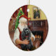 Sants auf Zuhause mit seinem schwarzen Cocker.Spaniel, entspannt vor einem gemütlichen Feuer vor der großen Nacht. Beachten Sie Mona Lisa über dem Mantel, der denselben Hund hält.