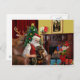 Santa auf Zuhause mit seinem Rottweiler, entspannen vor einem gemütlichen Kamin vor dem großen Tag. Beachten Sie Mona Lisa über dem Mantel, der denselben Hund hält.