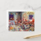 Eine wunderschöne Vintage Postkarte mit dem Weihnachtsmann und seinen Elfen in der Werkstatt.