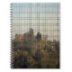 Aussicht auf den Wolkenkratzer im Zentrum von Santiago, Chile, vom Cerro Santa Lucia (mit Spiegelbild des Cerro Santa Lucia)