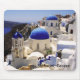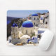 Eine Ansicht der berühmten blau-gewölbten Kirchen auf Santorini, Griechenland