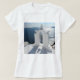 Ein weißer Kirchenturm in Oia, Santorin wirft einen Schatten.