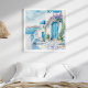 Aquarell Santorini Church Beach Coastal Wall Art ist ideal für die Dekoration einer Zuhause an der Küste.
