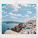 Santorini, Griechenland Beach House, weißes Betonhaus in der Nähe des Wassers unter dem weißen und blauen Wolkenhaus