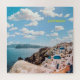 Santorini, Griechenland Beach House, weißes Betonhaus in der Nähe des Wassers unter dem weißen und blauen Wolkenhaus