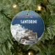 Santorini Griechenland auf den griechischen Inseln Gedenkschmuck zu feiern glückliche Erinnerungen Ihres Urlaubs. Foto einer Strandklippe in Oia mit weißgetünchten Zuhause, zusammen mit dem Wort Santorini in lustiger Typografie. Wählen Sie Ihre Schmuckform aus.