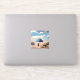 3"x3" Strandmalerei Vinyl Sticker von Santorini Griechenland. Ein Laptop, eine Wasserflasche oder ein Tablettenaufkleber, auf dem ein Handgemälde eines Strandes mit griechisch-weißer Kuppelarchitektur und weißen Blume zu sehen ist. Ideal für Strandliebhaber und Reisende. Dieser Aufkleber macht eine schöne Dekoration für Ihre persönlichen Sachen. Geschenke für einen Geburtstag, Jahrestag, Muttertag, Vatertag oder jede Gelegenheit.