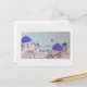 Die wunderschöne Insel Santorin, die auf dieser schönen Postkarte dargestellt ist.