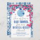 Mediterran griechische musikalische Bougainvillea-inspiriert Dancing Queen Baby Dusche lädt zum 12x18 ein, sich im Charme des Mittelmeers mit der Babydusche-Kollektion Mamma Mia zu verwöhnen! Feiern Sie Ihre kleine Ankunft inmitten der blauen und weißen Fliesen, die an das Meer von Santorin erinnern. Die Einladungen werden mit spielerischer Eleganz und rosa Bougainvillea gemacht, während die Zeichen und Dekoration farbenfroh sind und die Babydusche-Feier schön hervorheben. #zazzlemade