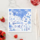 Ein modernes blau-weißes Aquarellbild von Oia auf der atemberaubenden griechischen Insel Santorin. Originelle Kunst von Nic Squirrell. Ändern Sie den Text, um ihn zu personalisieren.