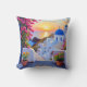 Bringen Sie den ruhigen Charme Santorinis in Ihre Zuhause mit diesem schönen dekorativen Kissen. Von einem Balkon mit Blick auf das Ägäische Meer, der mit einer atemberaubenden Szene aus einer goldenen Stunde geschmückt ist, erwarten Sie eine lebendige Bougainvillea, weiße Stuckwände und Kobalt-Kuppeln, die in einem impressionistischen Stil gehalten sind.