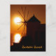Santorini Sunset mit Text - Windmill in Oia - Postkarte