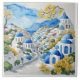 Santorini Wasserfarbe Griechische Häuser & gelbe B Fliese