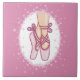 Azulejo de cerâmica com ilustração fofa com sapatos Bailarina com estrelas em tons rosa.