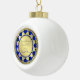 Ein Digitalbcon-Bilddesign mit einem blauen und goldenen Weihnachtsthema mit einer Vielzahl von individuellen Bildern, Formen, Mustern, Stilen und Schriftart in diesem einzigartigen "Sapphire Gold" Weihnachtsbaumschmuck-Keramik-Ornament. Dieses ansprechende und elegante Design wird durch die individuell anpassbare Textschrift ergänzt, die Ihrem Design eine besondere persönliche Touch verleiht und ein wunderschönes Weihnachtsgeschenk macht oder als elegante Ergänzung zu Ihrer Weihnachtsdekoration.