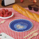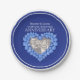 Saphire Hochzeitstag Party Einwegpapier Teller. Ideal, um besondere Party zum Saphirjubiläum, Party zum Abendessen und informelle Ansammlungen mit einer personalisierten Touch zu versehen. Personalisieren Sie mit Ihren fröhlichen Paarnamen und Foto im saphir Herzeffekt Foto Rahmen. Blauer Saphir Herzeffekt Kunst und Design von Sarah Trett.