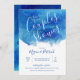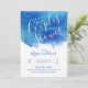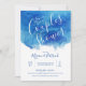 Erschwingliche, individuell bedruckte Duscheinladungen mit abstrakt blauem Aquarellhintergrund und moderner Schriftzeichen-Typografie. Personalisieren Sie es mit Ihren Polterabend-Daten. Verwenden Sie die Entwurfswerkzeuge, um die Textfarben und Schriftart zu ändern oder um zusätzliche Texte und Fotos hinzuzufügen, um ein einzigartiges Design zu erstellen. Ein stilvolles und unterhaltsames Einladungs-Design, das sich perfekt für eine Hochzeit zum Thema Strand eignet!