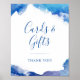 Maßgeschneidertes, bedrucktes Geschenktafelzeichen mit abstraktem blauen Wasserfarbenrand, um sich mit unserer Sapphire Tide Kollektion abzustimmen. Personalisieren Sie es mit Ihrem eigenen Text für Karten & Geschenke. Verwenden Sie die Designtools, um die Schriftart und Farben zu bearbeiten oder laden Sie Ihre eigenen Fotos, um ein einzigartiges von einer Art Hochzeitszeichen zu erstellen.