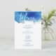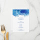Maßgeschneiderte Hochzeitsmenükarten mit abstraktem blauen Wasserfarbenrand, um sich mit unserer Sapphire Tide Kollektion abzustimmen. Passen Sie den Text mit Ihren Hochzeitsmenüs an. Verwenden Sie die Entwurfswerkzeuge, um die Schriftart und Farben zu bearbeiten oder um Text zu verschieben, um die Menüauswahl zu wählen. Dieses ozeanisch inspirierte Design ist perfekt für eine Hochzeit in Urlaubsort am Strand!