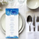 Maßgeschneiderte Hochzeitsmenükarten mit abstraktem blauen Wasserfarbenrand, um sich mit unserer Sapphire Tide Kollektion abzustimmen. Passen Sie den Text mit Ihren Hochzeitsmenüs an. Verwenden Sie die Entwurfswerkzeuge, um die Schriftart und Farben zu bearbeiten oder um Text zu verschieben, um die Menüauswahl zu wählen. Dieses ozeanisch inspirierte Design ist perfekt für eine Hochzeit in Urlaubsort am Strand!