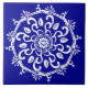 Diese weiße Mandala sitzt auf einem hellen, tiefblauen Hintergrund. Die Farben sind intelligent und introspektiv. Teil der Payon Mandala Kollektion.