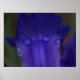 This striking macro photograph captures the intense, deep blue and purple hues of an iris petal, glistening with perfectly formed water droplets. The shallow depth of field keeps the focus sharply on the intricate details and textures of the wet petals, evoking a sense of tranquility and the freshness of a moment just after a rain shower. This image of natural beauty conveys feelings of hope and serenity, making it an engaging and visually captivating piece for any viewer.