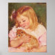 Dieses hübsche kleine Mädchen hält ihr wertvoll orangefarbenes Tabbierkätzchen sanft.