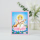 Saraswati sitzt auf Pink Lotus Postkarte