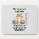 Entfesseln Sie den Sass mit diesem Mousepad 'My Level of Sarcasm Abhängig von Ihrem Grad an Dummheit'! Dieses Kunstwerk mit einer niedlichen Orangenkatze und einem urkomischen Ausdruck ist perfekt für diejenigen, die Spaß und Charme Liebe haben. Für Katzenliebhaber und Sarkastikexperten ist es das ideale Geschenk für jeden, der eine Touch spielerischer Einstellung genießt.