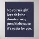 Nein, du hast recht, lass es uns den dümmsten Weg gehen, denn es ist leichter für dich. Dieser sarkastische Gegenstand ist der perfekte Spaß für alle, die ihn gerne ausschenken.