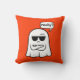 Ein humorvolles, dekoratives Kissen mit einem skeptischen Geist, der eine Sonnenbrille trägt, die Arme gekreuzt und das Sprichwort "wirklich?" auf einem lebhaften, orangefarbenen Hintergrund. Das Design zeichnet sich durch eine nüchterne, unbeeindruckte Einstellung aus, perfekt für diejenigen, die witzige Wohngestaltung mit einer Halloween-Drehung Liebe.