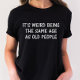 Dieses sarkastische Shirt ist perfekt für alle, die einen Geburtstag feiern. Mit der lustigen Phrase "Es ist seltsam, das gleiche Alter wie alte Menschen zu haben", bringt es jedem, der es sieht, sicher ein Schlückchen. Dieses Shirt aus hochwertigem, komfortablem Material ist für jeden Anlass geeignet. Egal ob Sie mit Freunden, in einem Party oder einfach nur auf der Zuhause sitzen, dieses Shirt wird sicher eine Aussage treffen. Holen Sie sich noch heute Ihre und lass allen, dass Sie keine Angst haben, Ihr Alter zu akzeptieren!