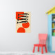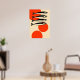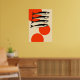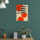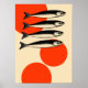 Diese minimalistische grafische Abbildung zeigt Sardinen gegen fett schwarze und lebendige rote Sonnenscheiben. Eine perfekte Wahl für diejenigen, die eine einfache, aber moderne künstlerische Darstellung des marinen Lebens schätzen.