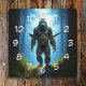 Ein Spaziergang von Bigfoot im Wald zwischen hohen Kiefernwald Uhr.